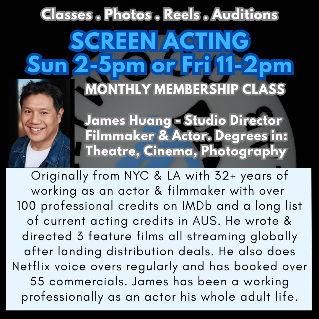 With a blend of theatre training and screen actor training, studio director James Huang has been a professional actor and filmmaker for 32+ years. He has worked as an actor in NYC, LA, and AUS in film, TV, commercials, voice over, theatre and print campaigns. His feature films have landed distribution deals after successful award winning festival runs and are currently streaming on platforms like Amazon Prime, Relay & Plex TV worldwide. He has appeared in nearly 200 professional acting roles since the 90s and relocated The Hollywood Actor Lab from Los Angeles in 2021. http://imdb.me/1jameshuang